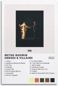 Досить уже про реперів та співаків. Час віддати належне продюсерам! Відомий продюсер Metro Boomin посідає центральне місце в «Heroes & Villains» (герої та негідники), демонструючи свої універсальні навички продюсера.