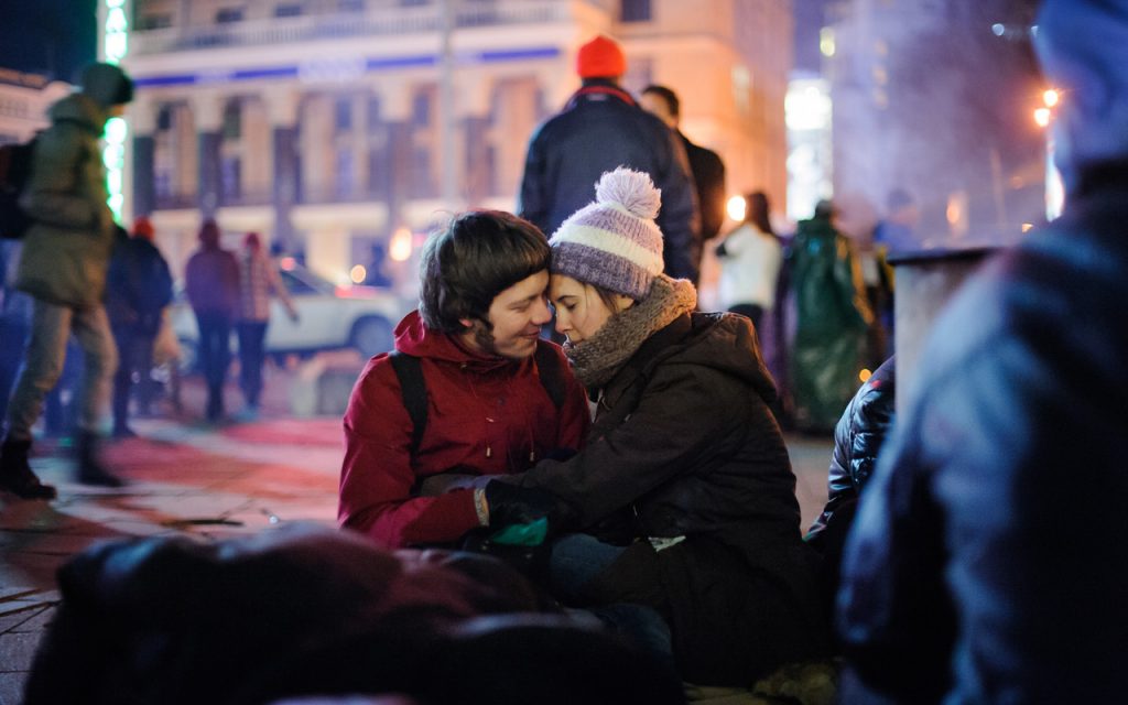 Вечір 10 грудня, перед спробою зачистки Майдану. Фото Sergei Supinsky / AFP / Getty Images.