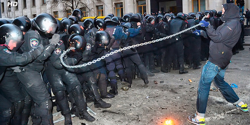 22 січня, правоохоронці та мітингувальник. Фото з сайту mir24.net.
