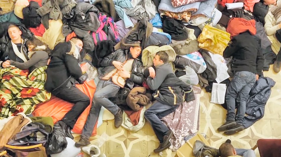 Один з грудневих днів, у захопленому КМДА сплять мітингувальники. Кадр відео Андрія Литвиненка.