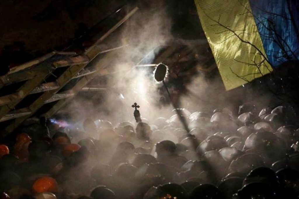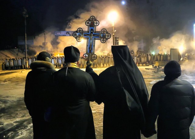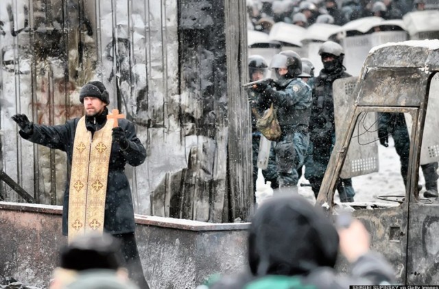 24 січня, священики перед кордоном ВВ і Беркута. Фото з сайту ukraine-revolution.tumblr.com.