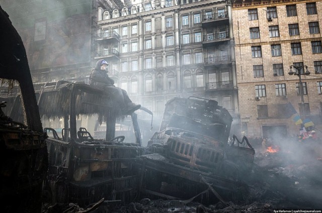 19 лютого тліючий Будинок профспілок. Фото з сайту esquire.ru.