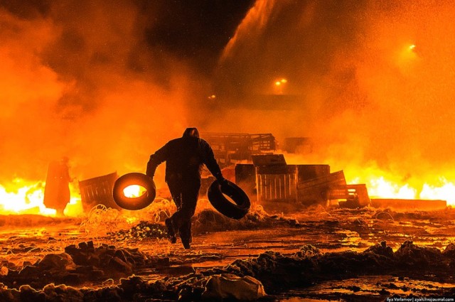 Ніч з 22 на 23 січня, Грушевського у вогні. Фото Іллі Варламова.