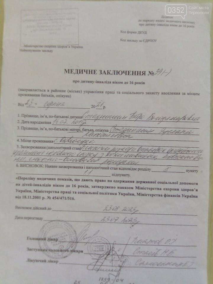 Маленький хлопчик Петрик зі самого дитинства має інвалідність і потребує постійного лікування та реабілітації. На щастя, лікарі дали дитині шанс на повне одужання, проте, щоб допомогти хлопчику у його мами Руслани, яка проживає сама із трьома дітьми, бракує коштів. Усіх небайдужих людей закликають допомогти Петрикові остаточно подолати недугу.