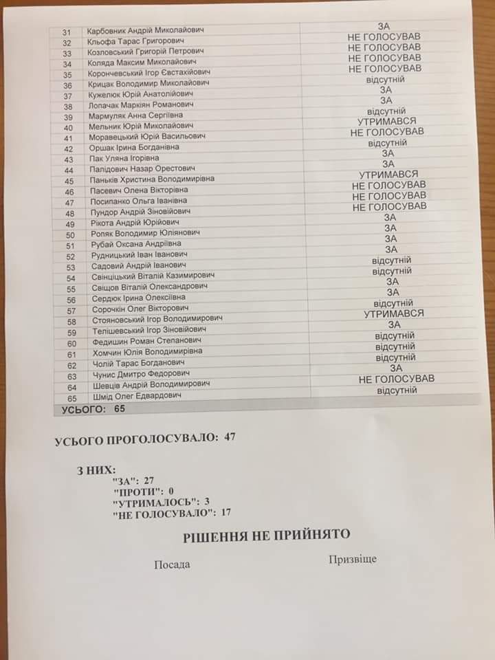 За проект відповідної ухвали проголосували лише 27 депутатів з необхідних 33 голосів.