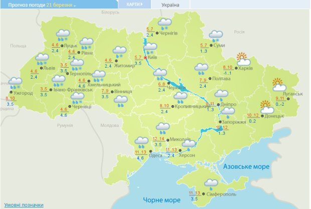 У суботу, 21 березня, погода у Львові не порадує – з ранку почнеться дощ, а до вечора він перейде в мокрий сніг.