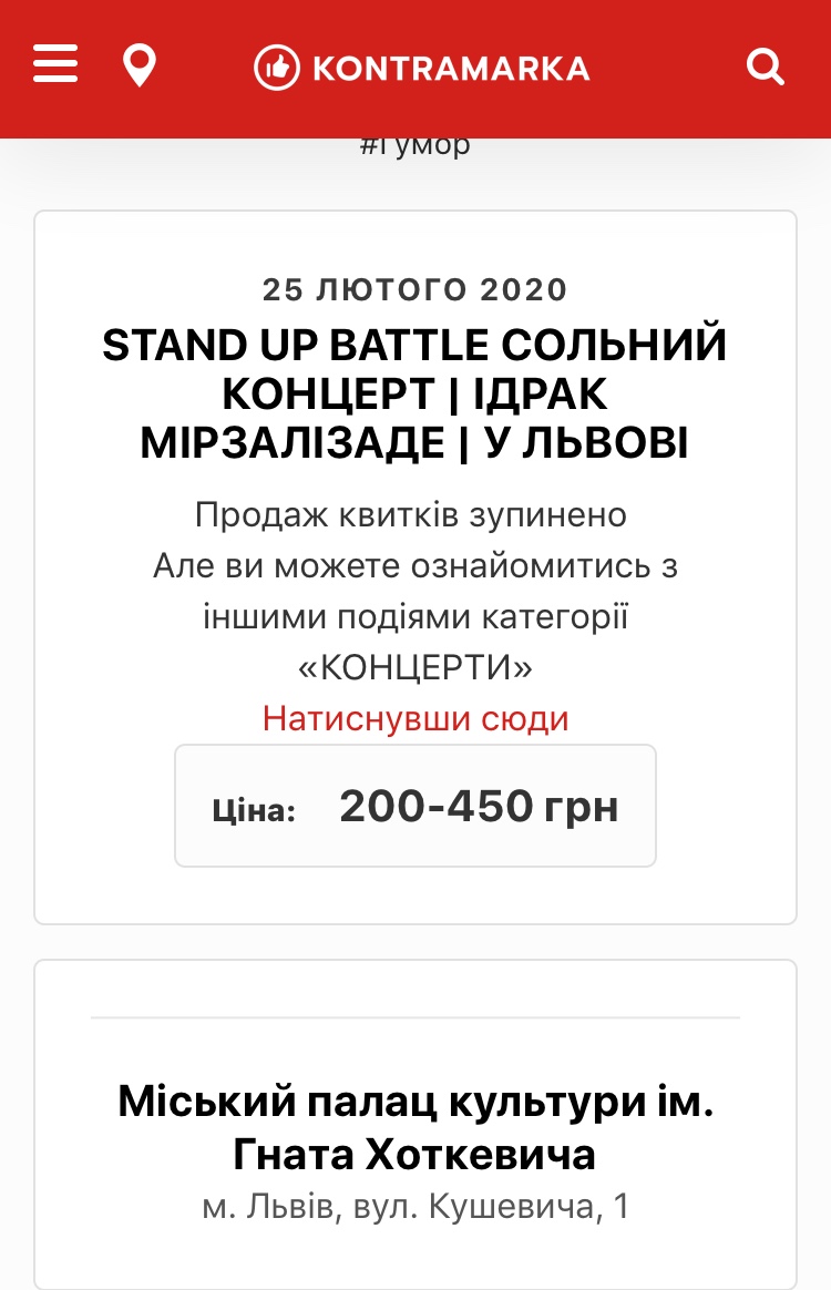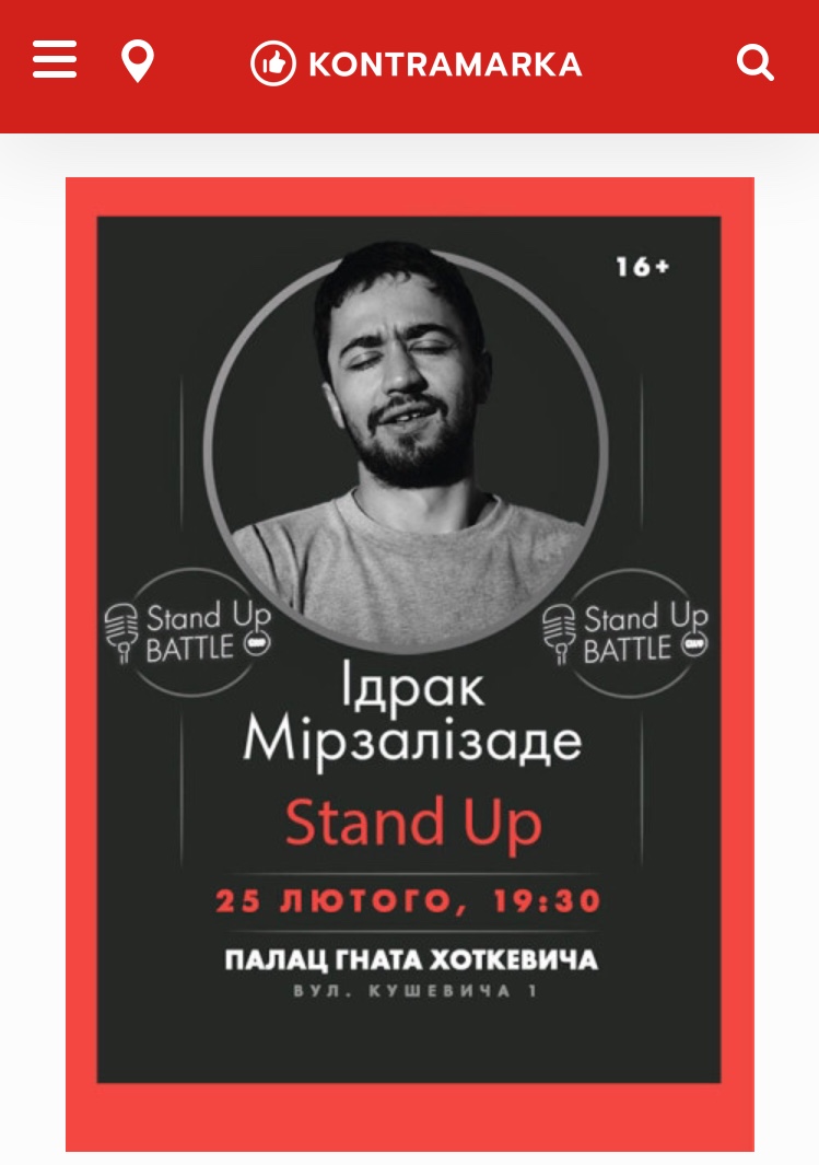 25 лютого 2020 року у Міському палаці культури ім. Гната Хоткевича у Львові відбудеться сольний концерт Stand Up коміка Ідрака Мірзалізаде.