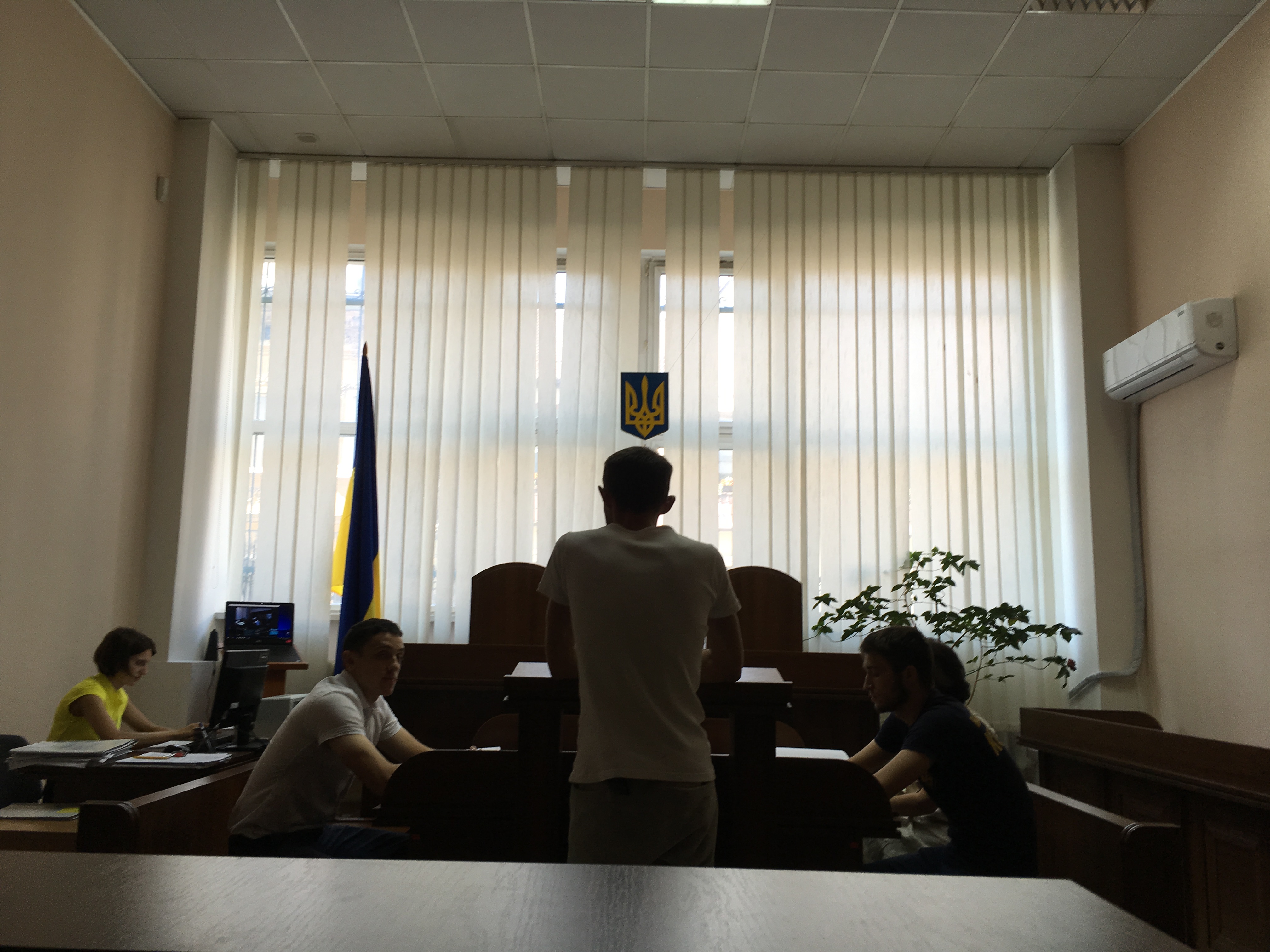 Тому сьогодні регулярно відвідують залу Галицького районного суду в компанії з “марою”, яка набула форми в лиці молодого активіста Макара.
