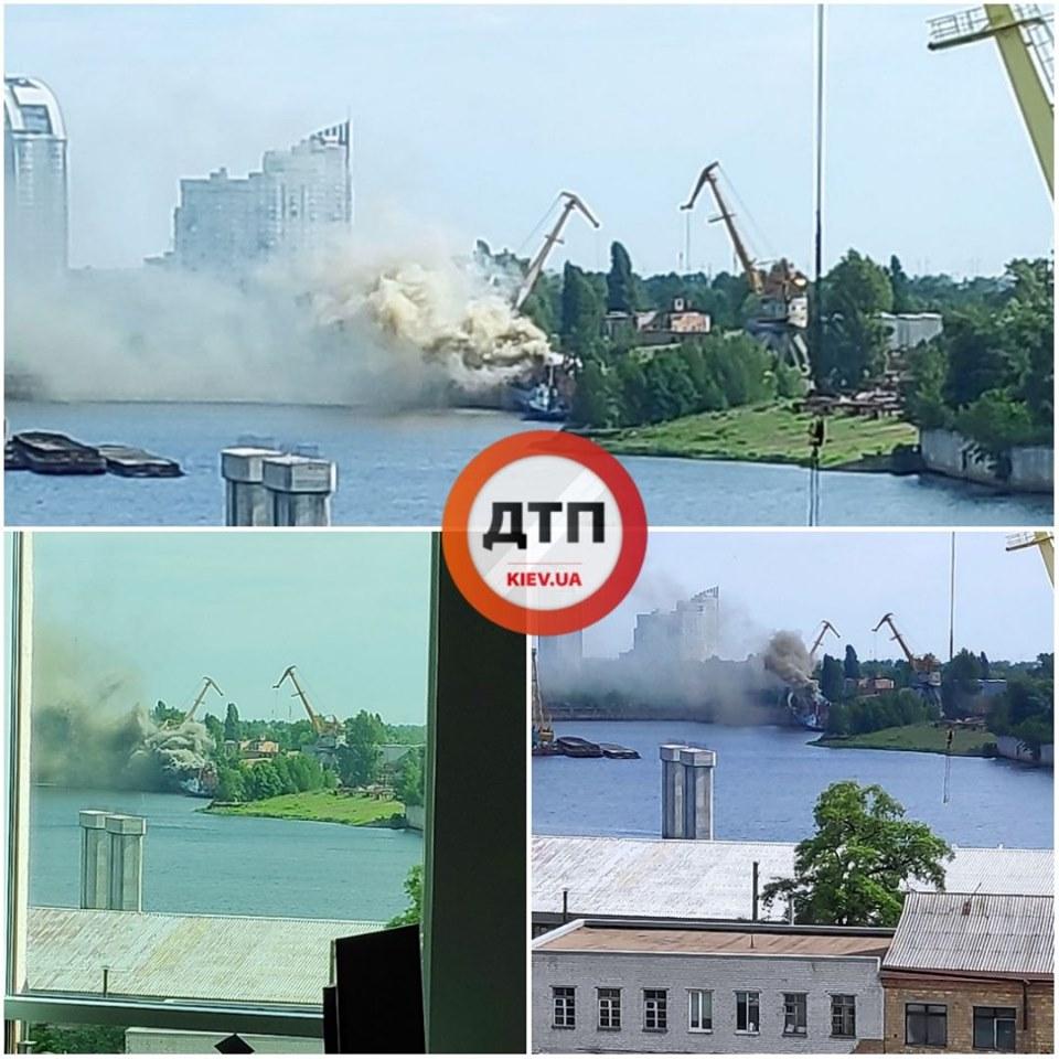 Очевидці у мережі опублікували знімки із займання на пірсі підприємства Інформації про причини займання та що саме горить наразі немає. Як повідомили у спільноті dtp.kiev.ua, на підприємстві спостерігається сильне задимлення, яке видно за декілька кілометрів від місця події.