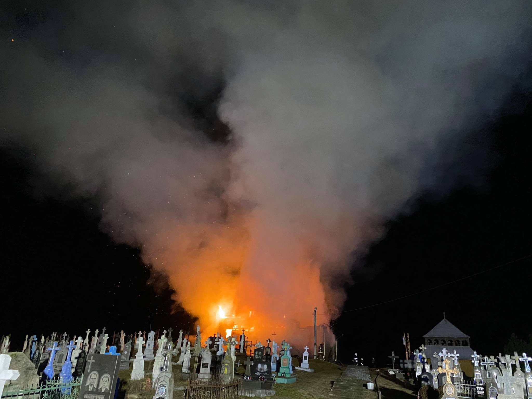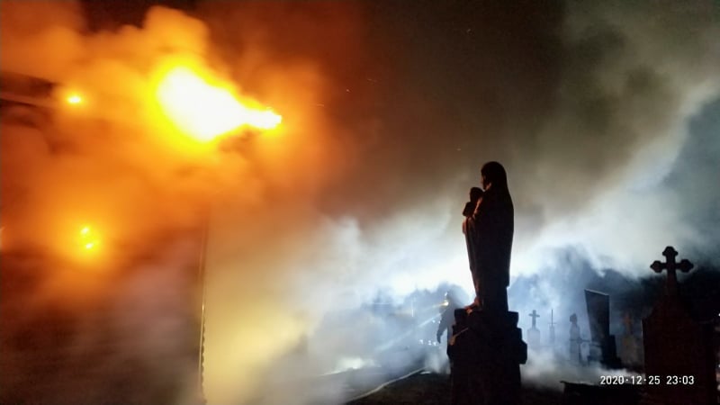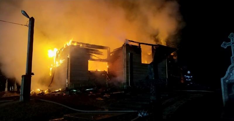 Вогонь повністю знищив церкву. Вогнеборцям вдалося врятувати дзвіницю