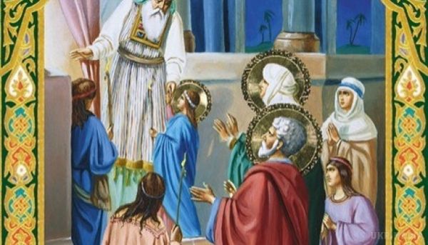 Трирічна Марія сама зійшла по високих сходинках. Там первосвященик зустрів і благословив її, як це він завжди робив з усіма, кого посвячували Богу. Потім, з натхнення Духа Святого, він увів її у Святе Святих. Це було найсвященніше місце у храмі. Туди ніхто не мав права входити, крім нього самого, і то лише раз на рік. Святий Дух навіяв первосвященикові, що Марія, обрана, достойна входити в найсвященніше місце. Їй наперед призначено Богом стати Матір’ю Сина Божого, який відкриє людям вхід у Царство Небесне. Іоаким та Анна, виконавши свою обітницю, повернулися додому, а Марія залишилась у храмі.