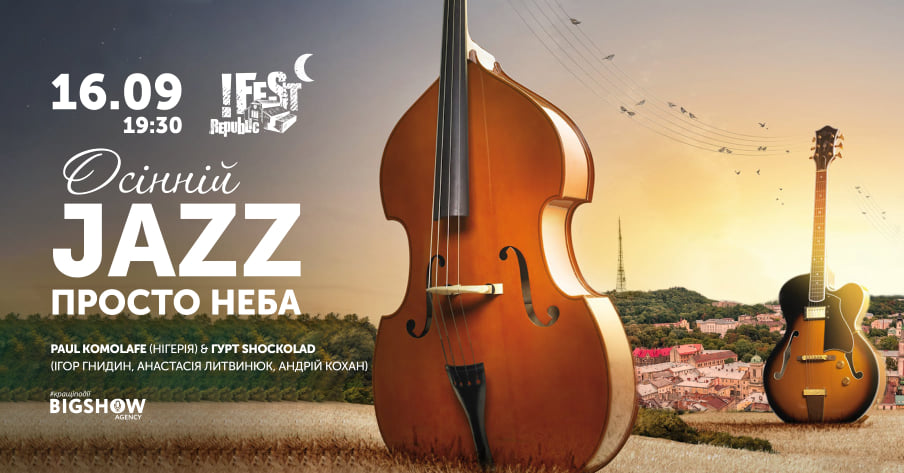 Комапанія “Bigshow Agency” предсталяє: 16 вересня о 19:30 у !FESTrepublic музиканти представлять «Осінній Джаз Просто Неба».