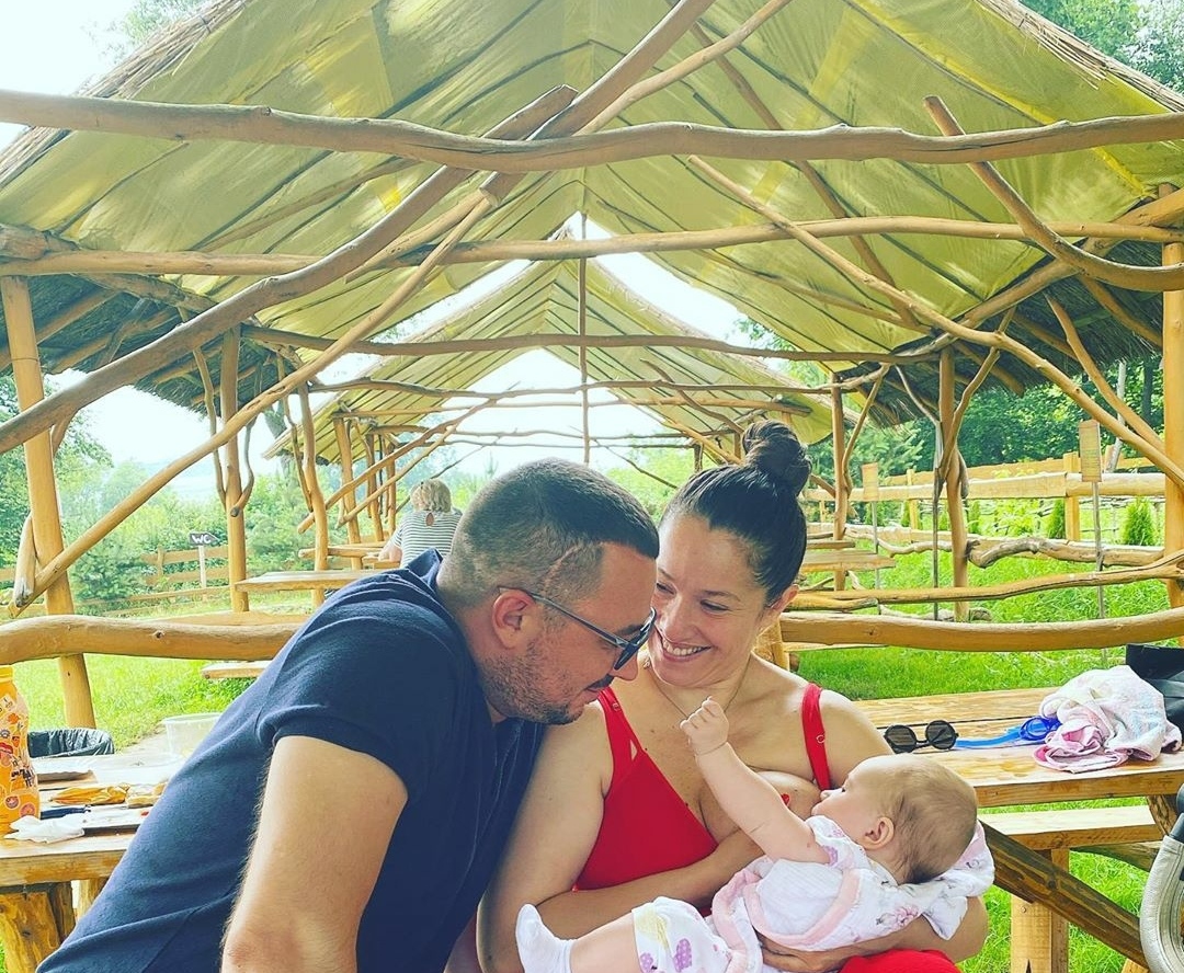 Після пологів Наталка Карпа поєднує музичну кар’єру з вихованням 6-місячної донечки Злати. Зірка пропагує грудне вигодовування й навіть наважилась нагодувати крихітку в одному з закладів на Львівщині, а зворушливим моментом поділилась на особистій сторінці в Instagram.