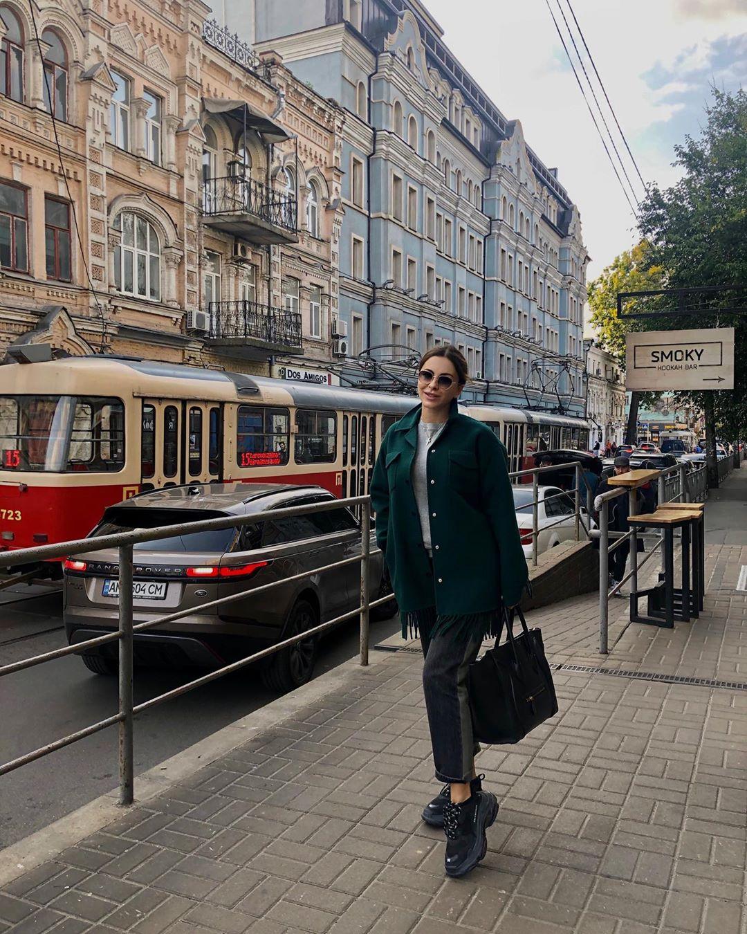 У кадрах Лорак постала на тлі української столиці у зеленій куртці, сірих джинсах і кросівках.