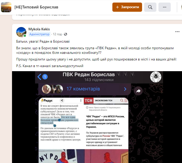 У Бориславі з’явилась група ПВК “Редан”, в якій молоді особи запропонували “сходку” в понеділок, 6-го березня, біля навчального комбінату.