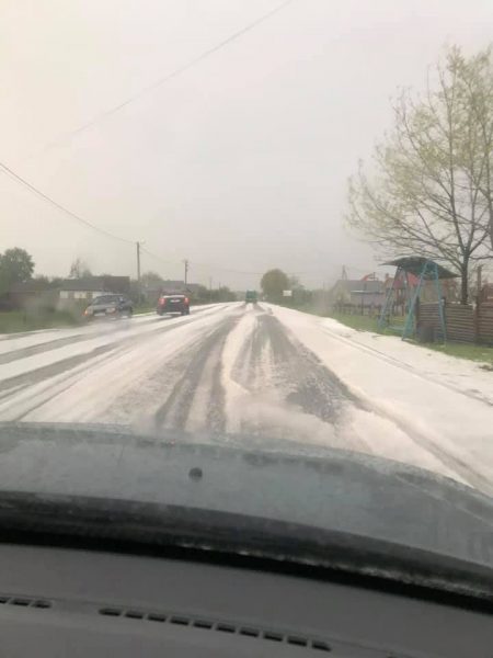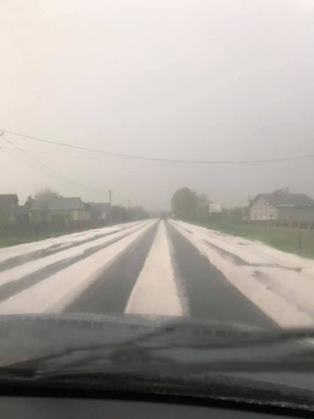 Учора, 17 травня, Прикарпаття продовжили вкривати потужні опади. Зокрема, на Івано-Франківщині, у Надвірнянському районі були опади у вигляді граду, який вкрив усю землю, через що складалось враження, що дорога засніжена.