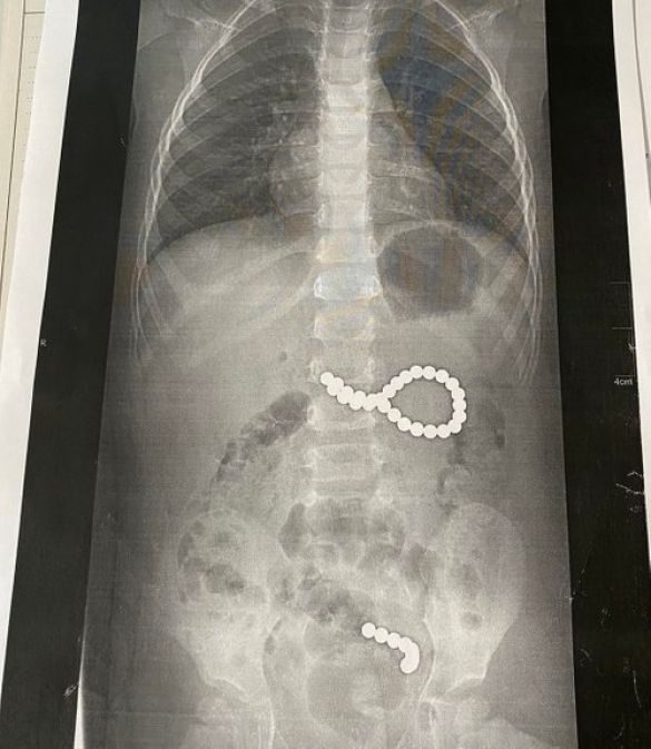 Дев’ять кульок під дією магнітного поля утворили ланцюжок і потрапили в кишківник, ще 27 кульок утворили неправильне коло і потрапити в кишківник не могли. Дівчинку довелося терміново оперувати.