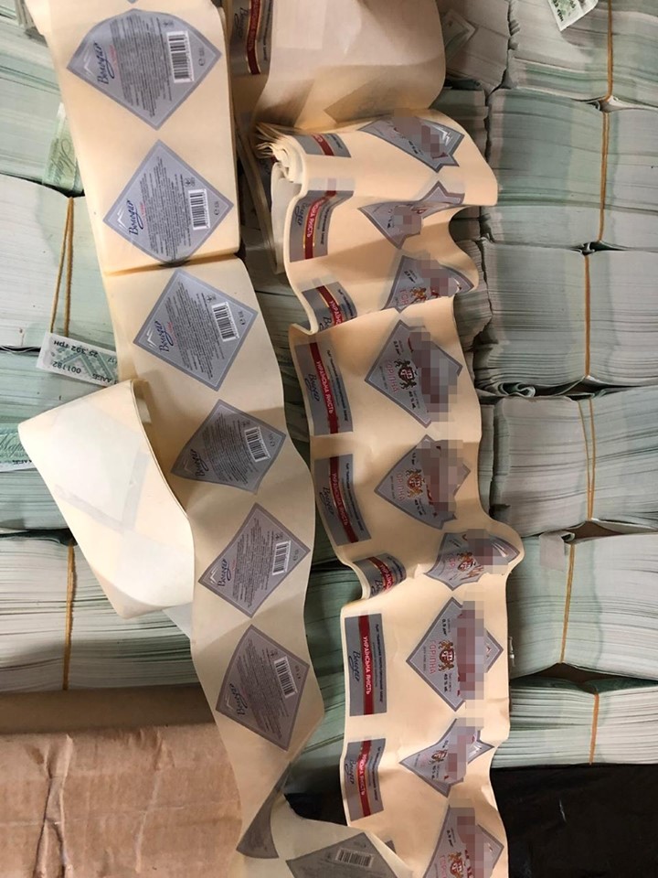 Під час проведення санкціонованих обшуків у зловмисників було вилучено майже 5 тонн спирту та спиртовмісної суміші, більше 65 тисяч марок акцизного збору з ознаками підробки, понад 1,5 тисячі пляшок з готовим фальсифікатом та обладнання, яке використовувалося для його виготовлення.