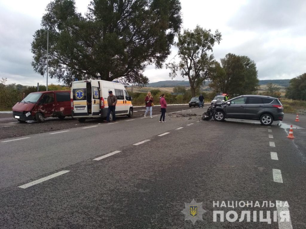 Як попередньо встановили правоохоронці, зіткнулись автомобілі «Форд Куга», яким керував 35-річний мешканець міста Вінниця та мікроавтобус «Форд Транзит» під керуванням 54-річного львів’янина. Внаслідок зіткнення тілесні ушкодження отримали водії транспортних засобів, а також 33-річна пасажирка легковика, жителька Вінниці та двоє пасажирів мікроавтобуса – 44-річна жінка та 18-річний хлопець, обидвоє – львів’яни.