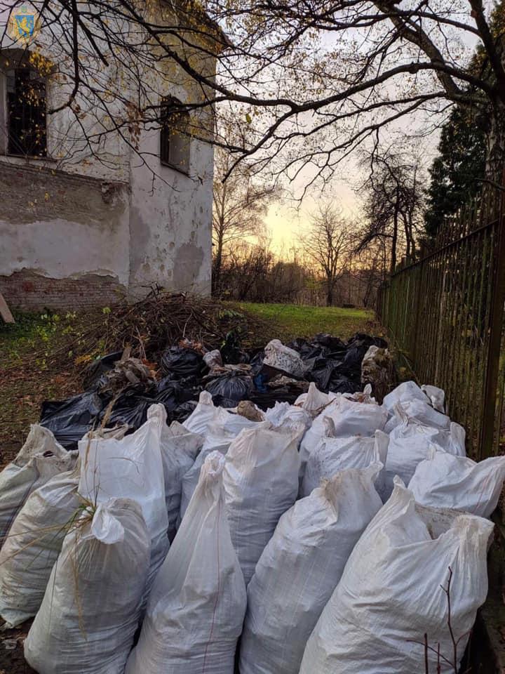 Під час виїзду було повністю викошено самосів на доступних частинах даху та довкола споруди костелу, зібрано 60 мішків побутового сміття.