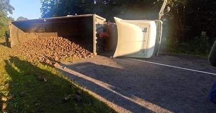«Аварія за Корчином у лісі на повороті, фура з буряком перекинулася і перекрила рух», – зазначається у повідомленні.