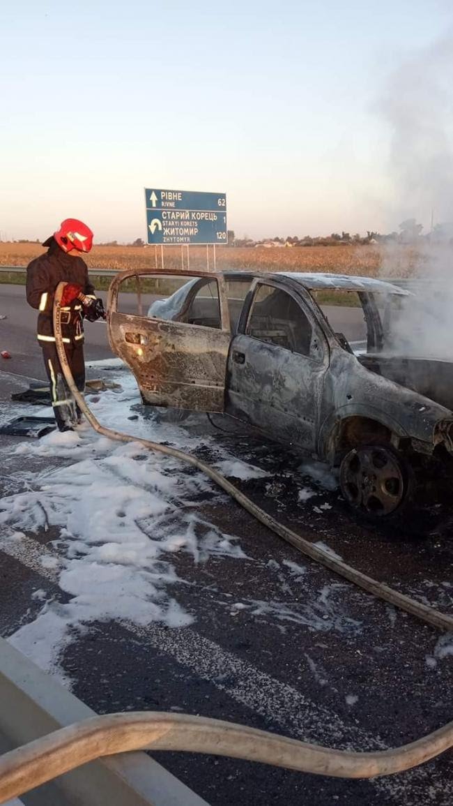 Сьогодні близько 07:30 на трасі Київ-Чоп неподалік Корця, що на Рівненщині, загорівся легковий автомобіль.