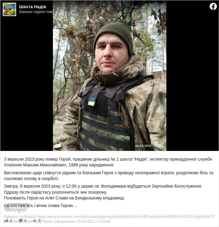Війна забрала життя прикордонника з Львівщини.3 вересня помер Герой, інспектор прикордонної служби Максим Миколайович Хлапонін, 1988 року народження,