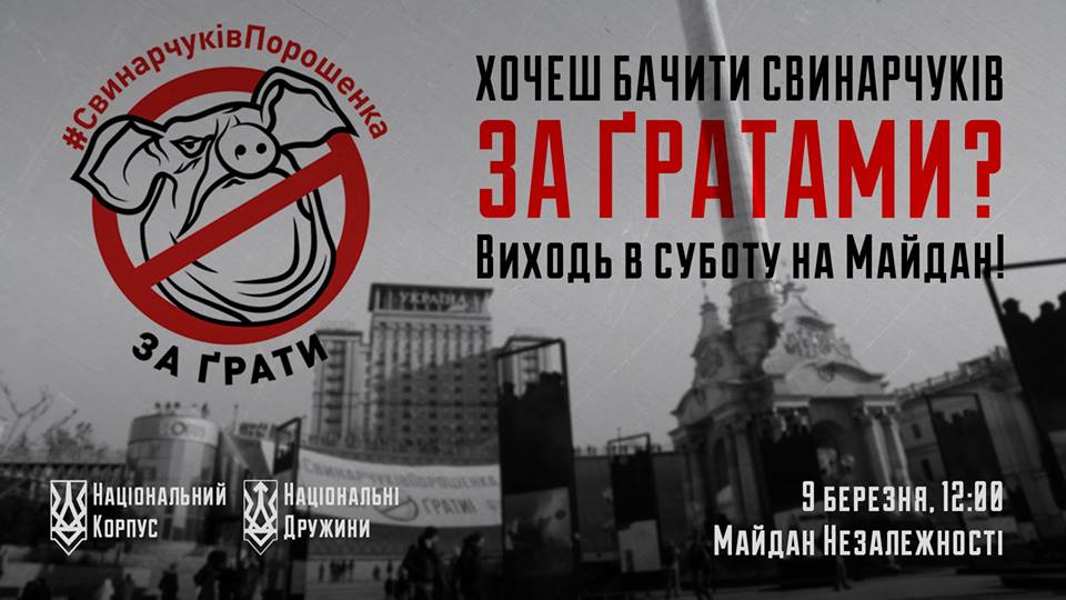 Національний корпус Львівщина закликає усіх небайдужих до своєї Батьківщини долучитися до акції #СвинарчуківПорошенка за грати.