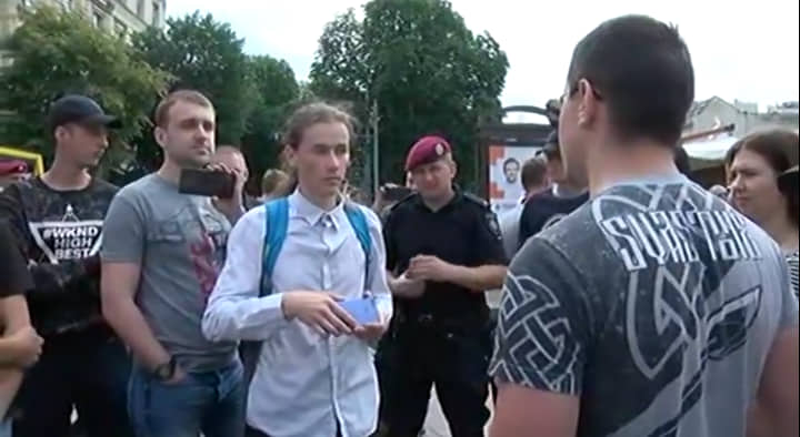 Також на акції був присутній і “Нацкорпус”. Націоналісти “полопали” червоні кульки, не давши фанатам українофоба Шарія завершити свій мітинг.