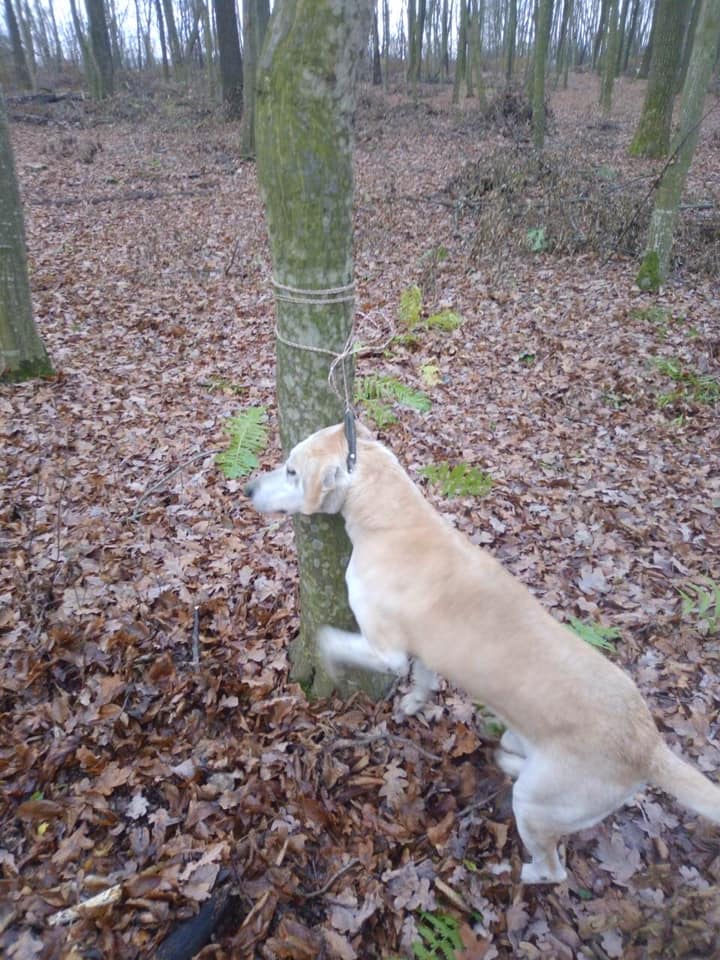 “Доброго дня. Прошу розголосу. Хотіли б поділитися інформацією про інцидент, який мав місце 30.11.2019 року в с. Дідова Гора Славутського району, Хмельницької обл. Під час законного полювання по близу с. Дідова Гора, помічник лісничого Кривинського лісництва ДП Славутського лісового господарства – Романюк Богдан Олегович, в присутності свого малолітнього сина, жорстоко повів себе з НАШОЮ мисливським собакою, прив’язавши того до дерева від чого пес ледь не задушився.