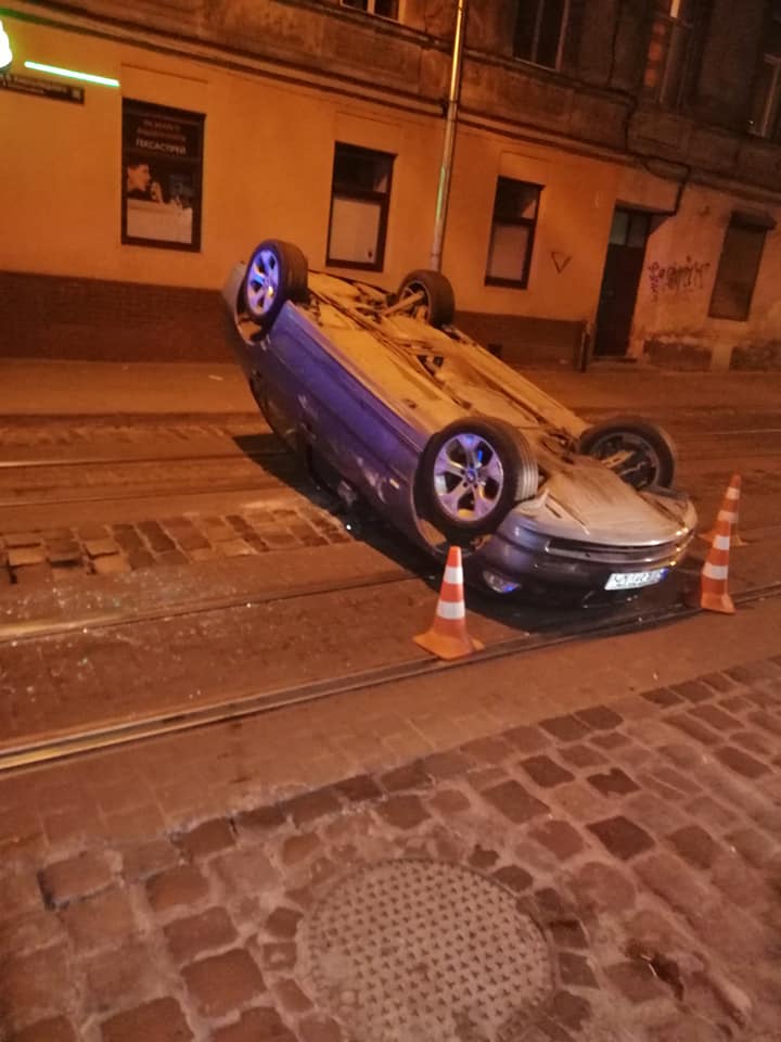 У Львові вночі відбулася ДТП на вул Б. Хмельницького, під час якої авто марки БМВ перевернулося.