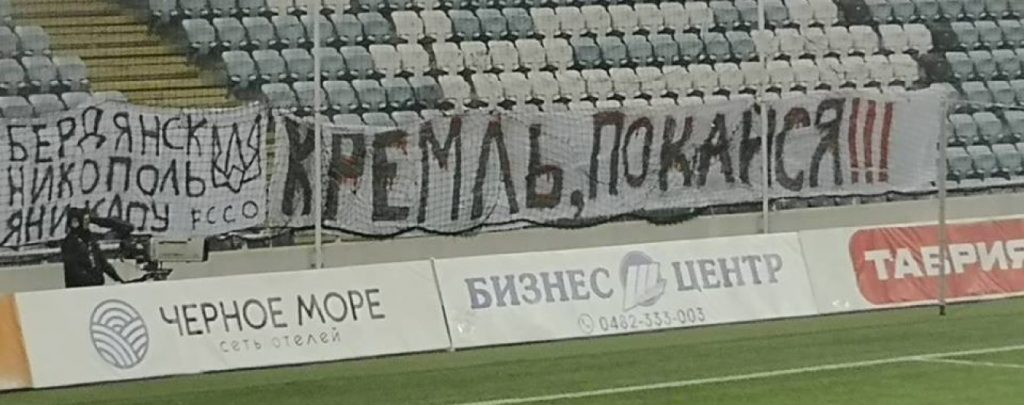 Нагадаємо, волонтер та блогер Роман Сініцин заявив, що в Одесі після футбольного матчу “Чорноморець” – “Ворскла” правоохоронці побили та затримали ультрас, які вивісили банер “Кремль, покайся!” і назви українських суден, захоплених РФ – “Бердянськ”, “Нікополь”, “Яни Капу”, підсвітивши це димами та фаєрами.