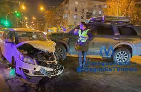 За даними свідків, позашляховик почав завертати з середньої смуги ліворуч на заборонений сигнал світлофору та протаранив автомобіль “Skоda”, який їхав по прямій на зелене світло.