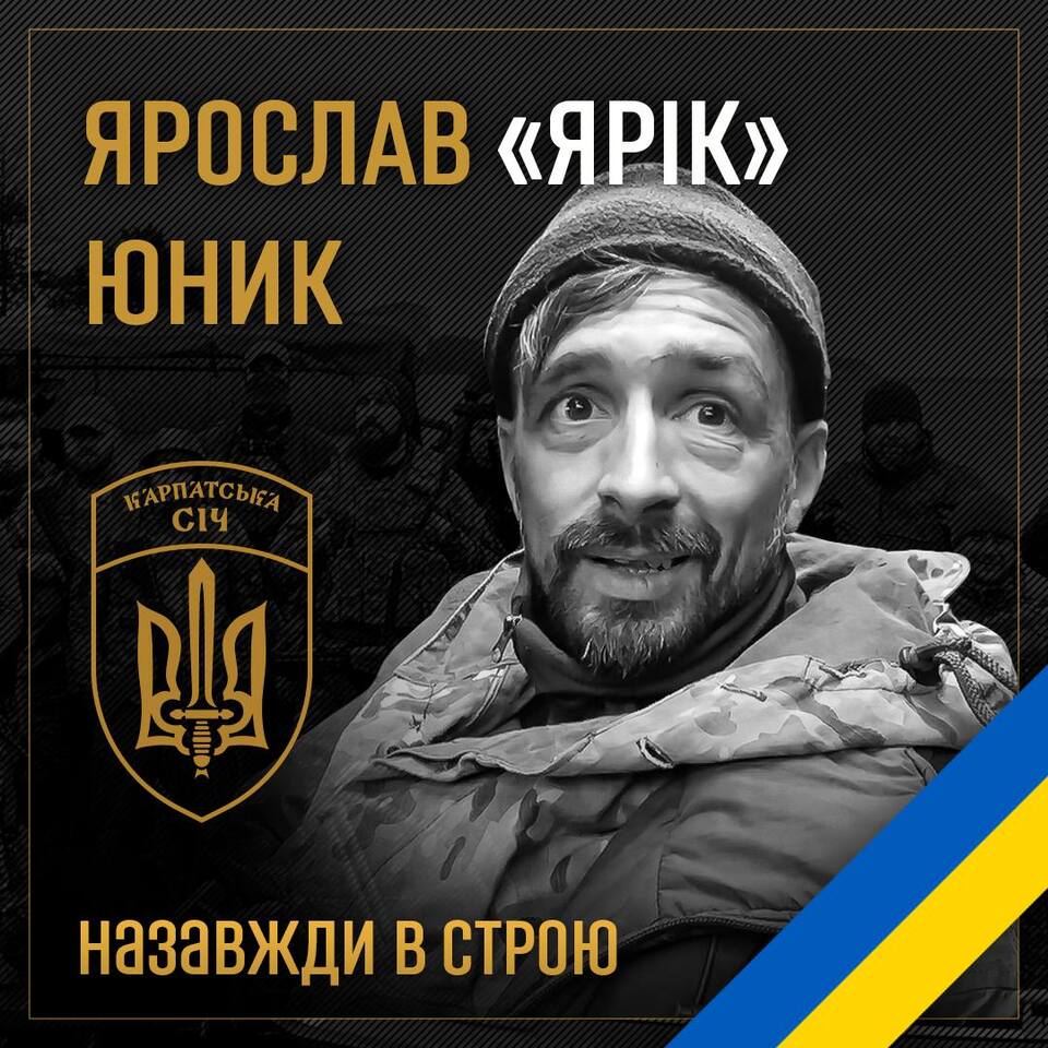 За волю та незалежність України загинув боєць Юник Ярослав Богданович «ЯРІК».