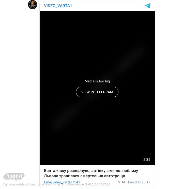 Ввечері, 8 лютого, близько 22:45 год., на трасі міжнародного значення «Київ — Чоп» біля населеного пункту Запитів сталася дорожньо-транспортна пригода з потерпілими.