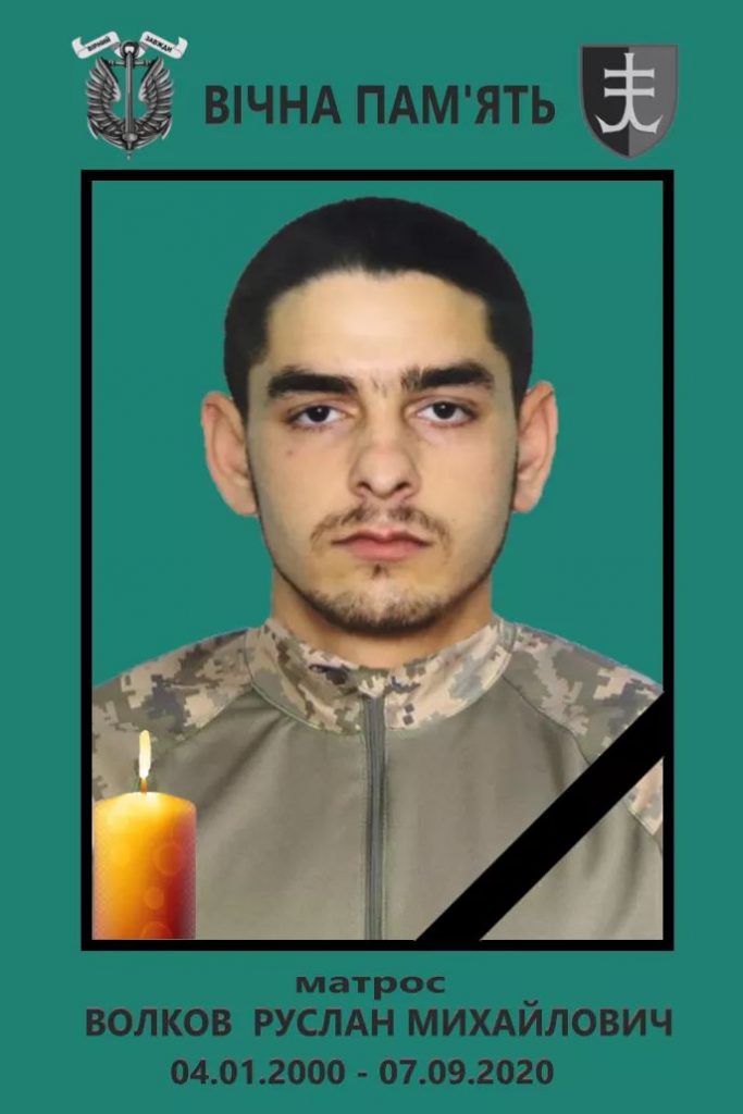 “Матрос ВОЛКОВ Руслан Михайлович – вогнеметник вогнеметного взводу роти радіаційного, хімічного, біологічного захисту військової частини А0216. 04.01.2000 року народження помер 7 вересня року у лікарні внаслідок чисельних опіків, отриманих під час підриву автомобіля на невідомому вибуховому пристрої у зоні проведення ООС в районі н.п. Новгородське Донецької області.” – йдеться у повідомленні.