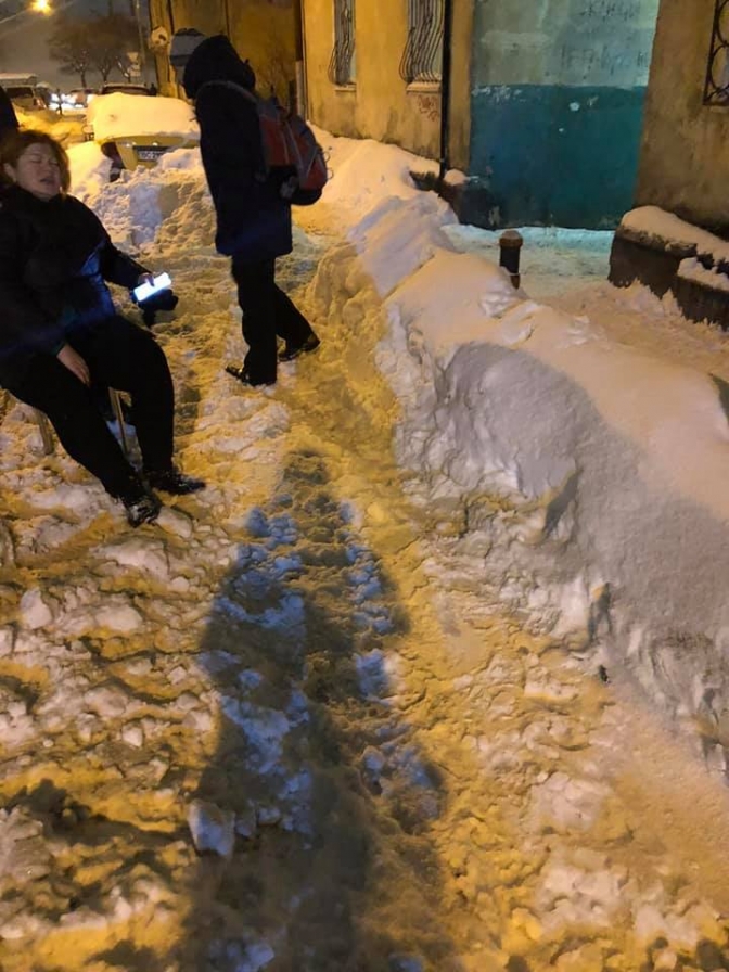 “Я прибирала від снігу подвір’я свого будинку, але не проїжджу частину, тротуар. Через дорогу пройти не можливо, на тротуарі також небезпечно, бо бурульки. Учора ввечері я йшла додому, переходила дорогу навпроти своєї брами – Грекова, 8. Ще не дійшла до тротуару, підсковзнулась і упала. Машина проїхала у тридцяти сантиметрах від мене. Я впала на проїжджій частині через те, що під снігом був лід”, – розповідає Галина Калина.