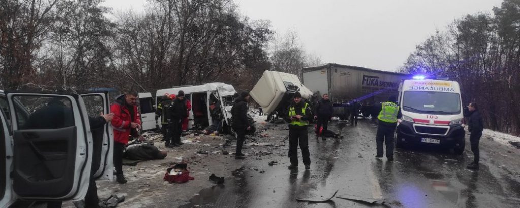 Внаслідок ДТП у Чернігівській області за участі вантажівки та маршрутки вчора загинули 13 людей, ще 7 тяжко травмовані. наразі особа одного із загиблих все ще не встановлена.