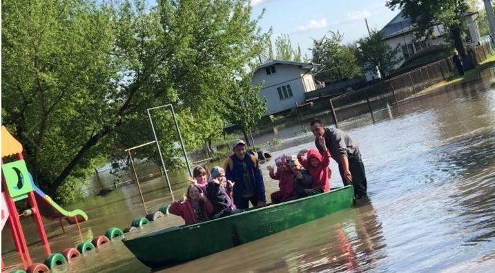 Світлини тисменичан, які пливуть на човні вулицею Княгиницького, зробила Марія Ремська-Ярош та Лілія Мороз.