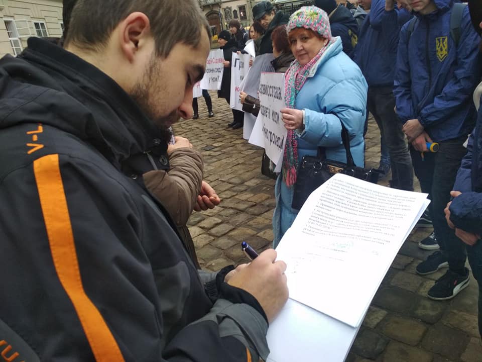“Ми прийшли під громадську приймальню Садового, щоб нагадати міській владі про її прямі обов’язки. На жаль, замість діалогу можновладці вкотре обгородилися так званою “муніципальною вартою”.Міський голова та його свита явно не готові до спілкування з громадою”, – йдеться у повідомленні.