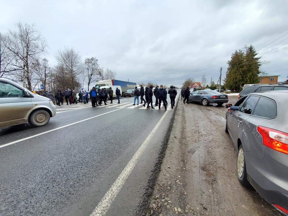 Кілька десятків людей перекрили дорогу національного значення. Вони вийшли на протест через карантинні заходи, нещодавно введені в дію на Івано-Франківщині.