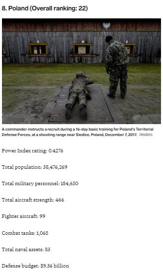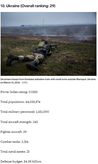 Вашій увазі рейтинг потужності армій країн-сусідів України і самої України. Рейтинг складенний на основі досліджень видання Business Insider.