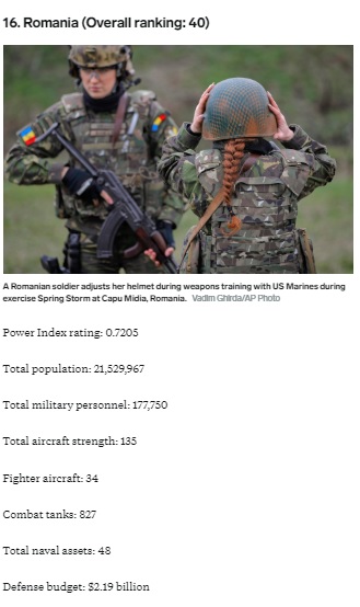 Румунія займає 16 місце за потужністю армії у рейтингу всіх Європейських країн. А в нашому рейтингу серед армій сусідів України займає 4 місце.