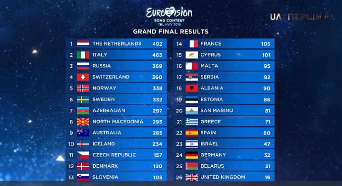 Учора, 18 травня, у Тель-Авіві відбувся гранд-фінал міжнародного конкурсу Євробачення-2019. Перемога дісталася представнику Нідерландів, Данкану Лоуренсу.