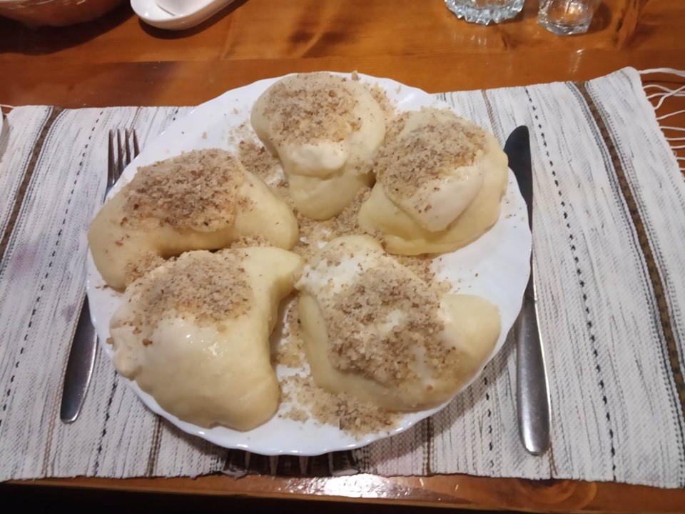 Кафе Колиба найбільше вразило смачною кухнею і впевненістю можу сказати, що готують тут найкраще зі всіх кафе, що ми відвідали. Особливо раджу спробувати пироги з вишнями (нижче на фото).