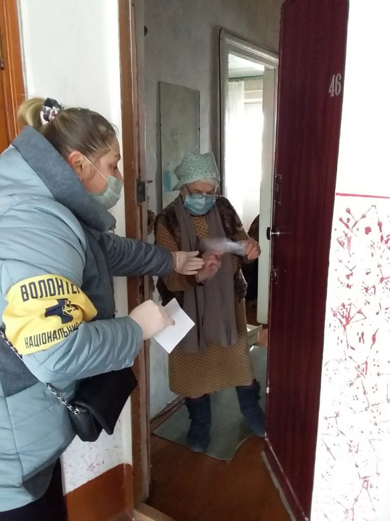 Жінка дуже зраділа, адже встигла скучити за смаком хліба. Також літня пані передала волонтерам показники лічильників і платіжки, бо сама оплатити комунальні послуги не могла. Втім, активісти не взяли з жінки грошей на оплату компослуг, а зробили це власним коштом. Зустріла вона волонтерів у медичній масці та рукавичках.