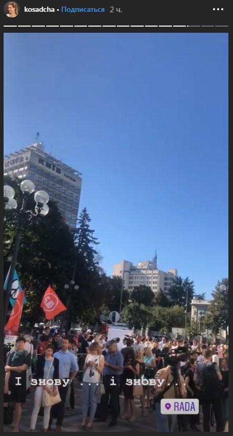 На своїй сторінці в мережі instagram, а розділі сторіз телеведуча опублікувала пару відео, зроблених під стінами і всередині будівлі Ради на вул. Грушевського в Києві.