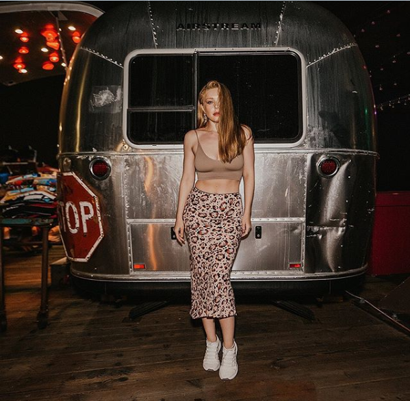 На ній вона позувала в бежевому топі без бюстгальтера. Свій образ Тіна доповнила спідницею з анімалістичним принтом і білими кросівками.