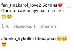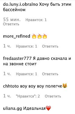 Фолловери не пройшли повз: “Ну що сказати? Бомба”, “сексс”, “Хочу бути цим басейном”, “воу воу воу полегше?”, “Ідеальна❤️”, “Богиня❤️Просто найкраща на світі ??”, “Шикарна???”, “???Звабила вже, роздягайся???”, “Бейбі??”.
