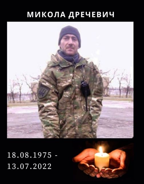 Вже друга сумна звістка надійшла за ці дні до Бориславської громади. У бою з російським окупантом, захищаючи незалежність та територіальну цілісність України, поблизу населеного пункту Дементіївка, що на Харківщині, сьогодні, 14 вересня, знайшли тіло загиблого земляка, старшого сержанта Дречевича Миколи Даниловича. Він вважався зниклим безвісти від 13 липня 2022 року.
